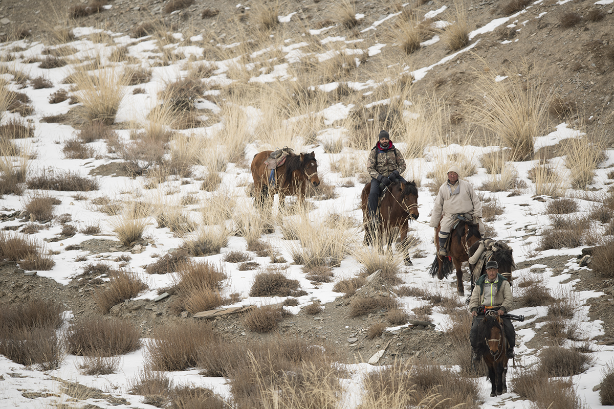Left early morning for Altai Mountains, which was going to be our home for the next five days. The journey itself was a great adventure where we had to cross-frozen rivers. A few kilometers before the camp a group of horsemen were waiting for us to lead us to the camp. They also acted as icebreakers on some streams so that the SUV could crossover. The last 2-kilometer we had to walk to the camp. Thankfully there were no altitude issues like in Ladakh even though it was freezing cold. After reaching the camp and putting our gear in the Ger (traditional Mongolian tents) we went to wander around our camp and take a few evening pictures. We were told about a horse kill on the mountains and the plan was to head for it the next day.
